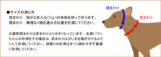 実際にペットの首まわり・頭まわりをお測りの上、サイズに該当するものをお選びください。