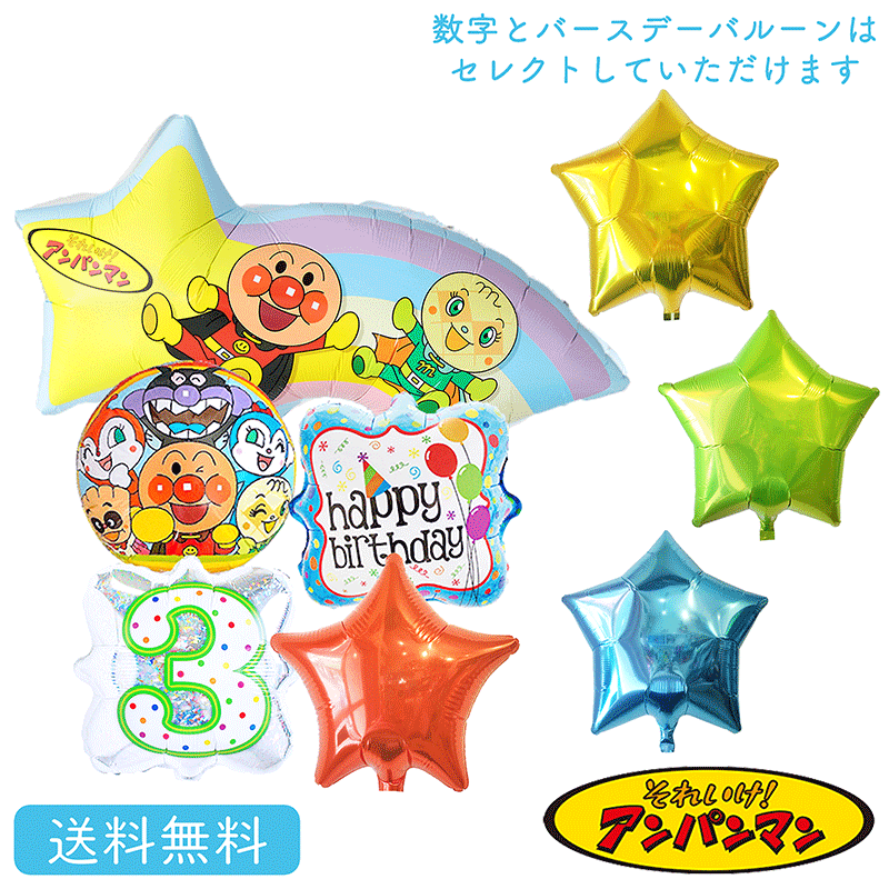 バースデー プレゼント バルーン サプライズ ギフト パーティー Birthday Balloon Party 風船 誕生日 誕生会 お祝い ながれ星 アンパンマン バルーン ナンバーバルーン ST