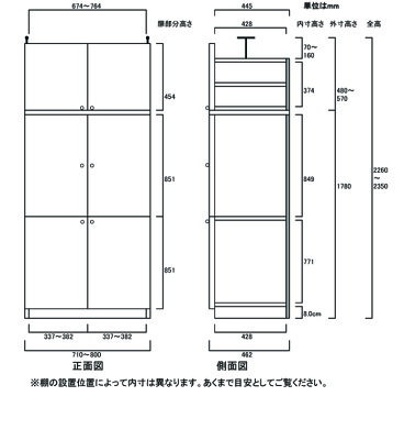 防振対策天井つっぱり全面扉書棚 移動式棚 商品仕様 ■タイプ: タフ棚板(棚板厚さ2.5cm)タイプ ■棚板耐荷重: 10Kg ■外寸: 奥行46cm×高さ226〜235cm×幅71〜80cm (幅は1cm単位でオーダーできます) ■対応天井高:(2m26cm〜2m35cm) 226cm 227cm 228cm 229cm 230cm 231cm 232cm 233cm 234cm 235cm 伸縮式のつっぱり金具で高さ2m26cm〜2m35cmの天井に対応します (2m26cm 2m27cm 2m28cm 2m29cm 2m30cm 2m31cm 2m32cm 2m33cm 2m34cm 2m35cm) ■外寸(幅): 71cm 72cm 73cm 74cm 75cm 76cm 77cm 78cm 79cm 80cm ■棚板枚数 移動固定棚板:7 ■構成:本体…奥行46cm×高さ178cm×幅71〜80cm 突っ張り棚…奥行46cm×高さ41cm×幅71〜80cm 本体用扉…高さ170.2cm×幅71〜80cm 突っ張り棚用扉…高さ45.4cm×幅71〜80cm 転倒防止天井つっぱり全面扉書棚 木製 オーダー 天井つっぱり全面扉書棚_ 商品詳細 本体 + 突っ張り棚 + 本体用扉 + 突っ張り棚用扉のセットです。