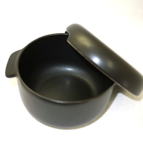 (IH電磁調理器は不可). . 内容(日本製) 製造元:弥生陶園 材質:耐熱セラミック(食品用容器安全検査済) 色:黒 サイズ:径15.7cm高さ11cm 容量:ご飯約2合 重量:1050g(蓋含む) 1合用も有ります。